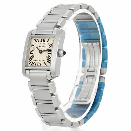4. カルティエ Cartier タンク フランセーズ SM SS レディース 時計 クォーツ アイボリー文字盤 W51008Q3【中古】