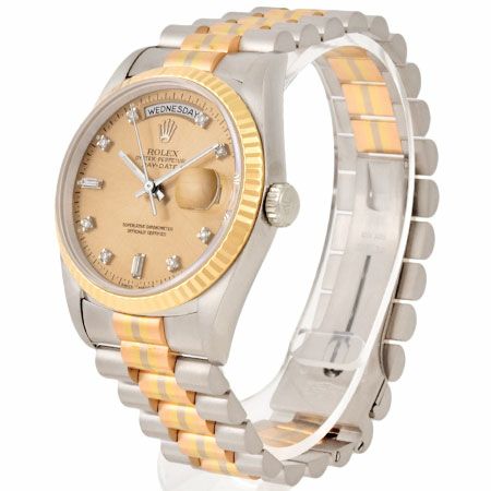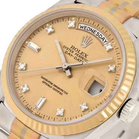 - ロレックス ROLEX デイデイト トリドール 18239BIC W番 10P ダイヤモンド WG/YG/PG メンズ 自動巻き 時計 コパー文字盤【中古】