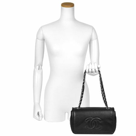3. シャネル CHANEL ココマーク Wチェーン 2WAY ショルダーバッグ キャビアスキン ブラック シルバー金具 【中古】