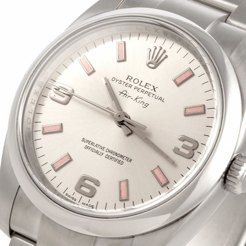- ロレックス ROLEX エアキング 114200 SS ランダム メンズ 自動巻き 時計 ピンクバーインデックス シルバー文字盤【中古】