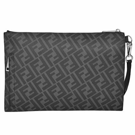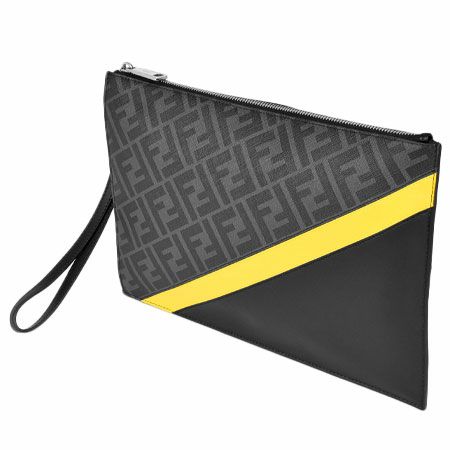 送料無料 フェンディ FENDI ズッカ クラッチバッグ ブラック イエロー グレー レザー キャンバス 7N0110【中古】