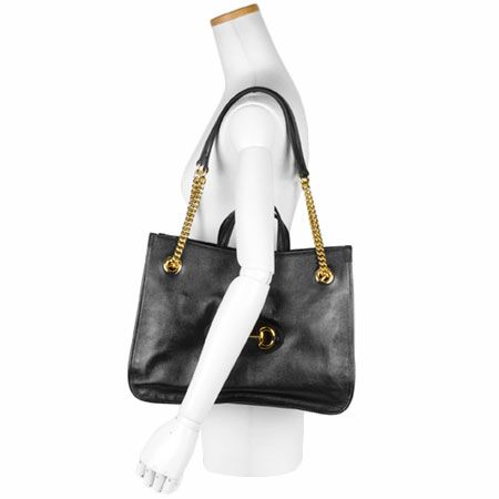送料無料 グッチ GUCCI ミディアム トートバッグ ホースビット 1955 レザー ブラック ゴールド金具 621144【中古】