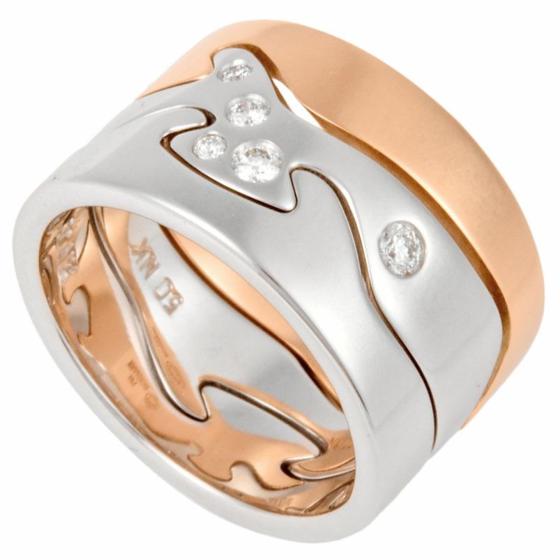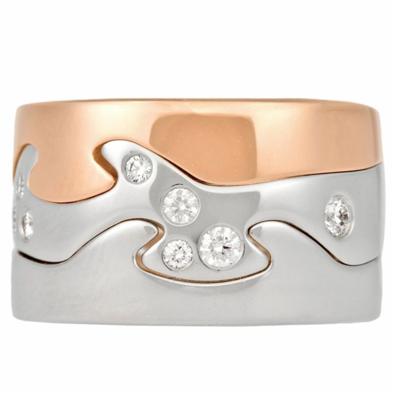 5. ジョージジェンセン GEORG JENSEN フュージョン リング 3バンド K18WG/PG ダイヤモンド #50【中古】