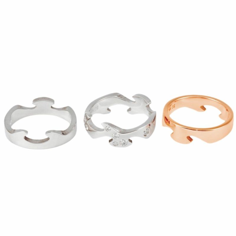 3. ジョージジェンセン GEORG JENSEN フュージョン リング 3バンド K18WG/PG ダイヤモンド #50【中古】