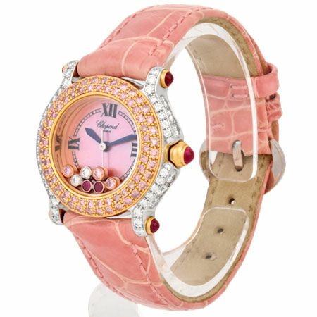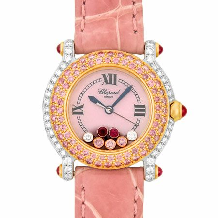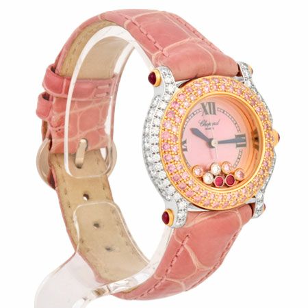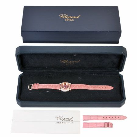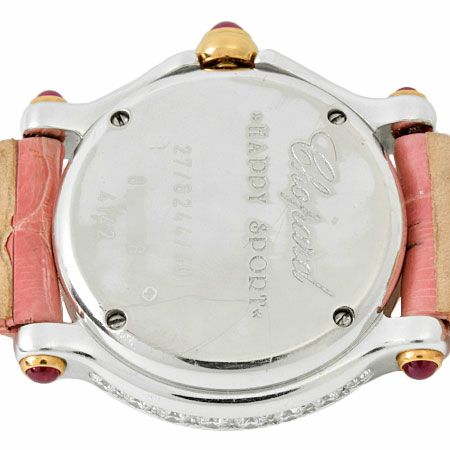 - ショパール Chopard ハッピースポーツ ピンクダイヤベゼル K18PG/WG レディース 時計 クォーツ シェル文字盤 27/6244/401【中古】