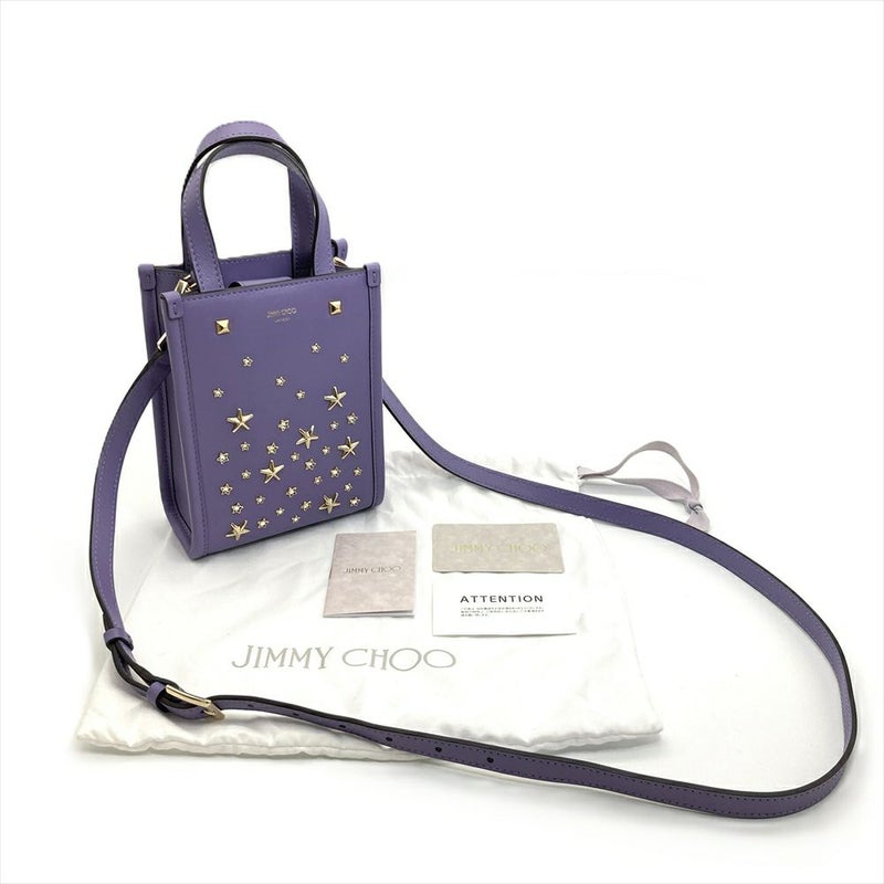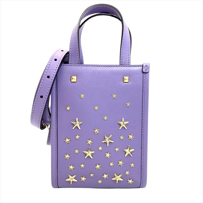 ジミーチュウ JIMMY CHOO MINI N/S TOTE CZN クリスタルスタッズ ミニトート ショルダーバッグ レザー ラベンダー ゴールド金具 スター レディース【中古】