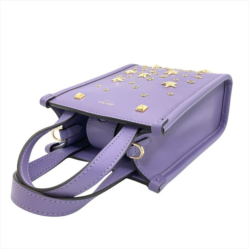 3. ジミーチュウ JIMMY CHOO MINI N/S TOTE CZN クリスタルスタッズ ミニトート ショルダーバッグ レザー ラベンダー ゴールド金具 スター レディース【中古】