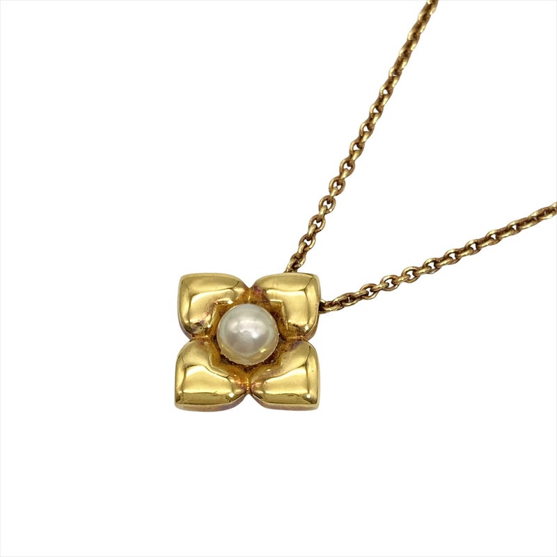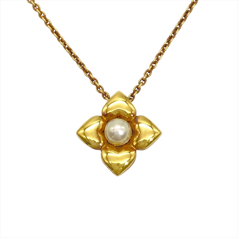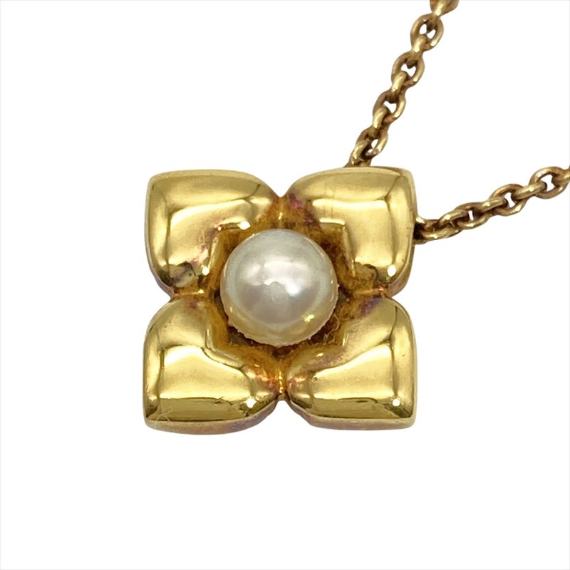 ミキモト MIKIMOTO フラワーモチーフ 1P パール ネックレス K18YG 5.4g 真珠 イエローゴールド レディース【中古】