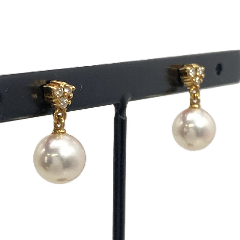 ミキモト MIKIMOTO パール 7mm ピアス ダイヤモンド K18YG 2.3g 真珠 イエローゴールド レディース【中古】