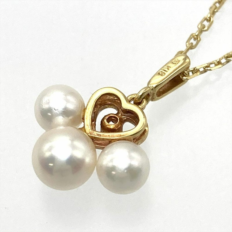 3. ミキモト MIKIMOTO ベビーパール 3P ハート ネックレス K18YG 2.8g 真珠 イエローゴールド 透明石 レディース【中古】