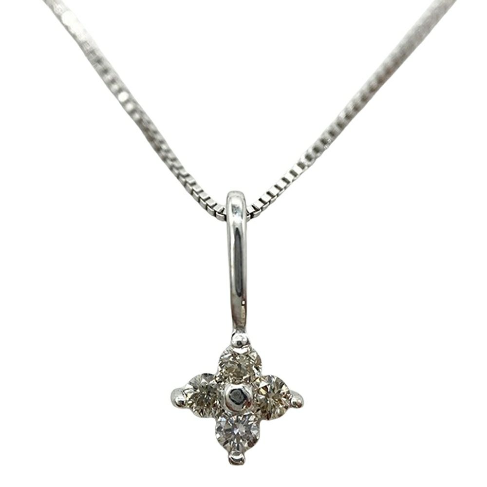 フラワー ネックレス ダイヤモンド 0.04ct K10WG 0.7g シルバー ホワイトゴールド シンプル 小さめ レディース【中古】