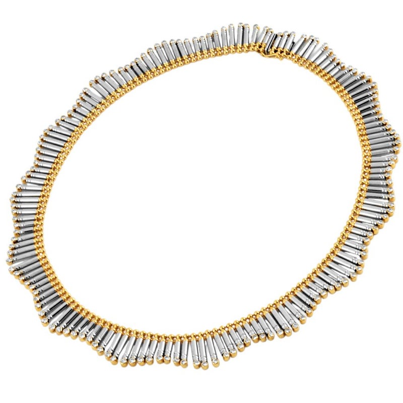 3. デザイン ネックレス ダイヤモンド 7.57ct K18YG 66.3g Pt850 チョーカー コンビ イエローゴールド プラチナ レディース【中古】