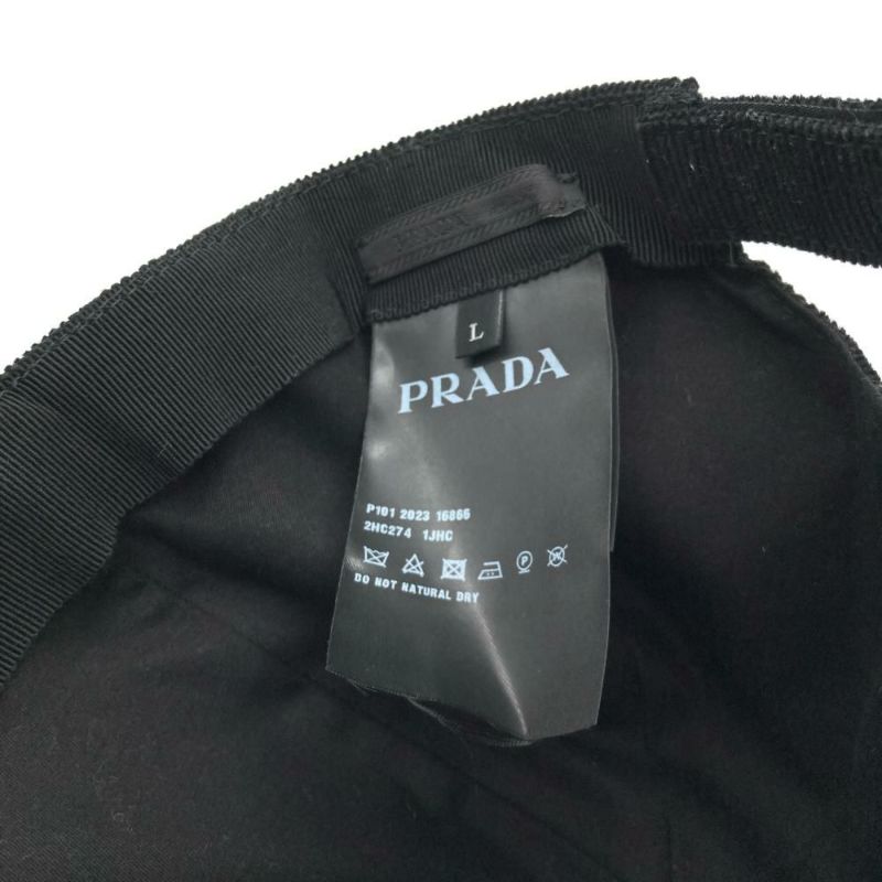 5. プラダ PRADA トライアングル ロゴ プレート キャップ コーデュロイ 2HC274 1JHC ブラック L【中古】