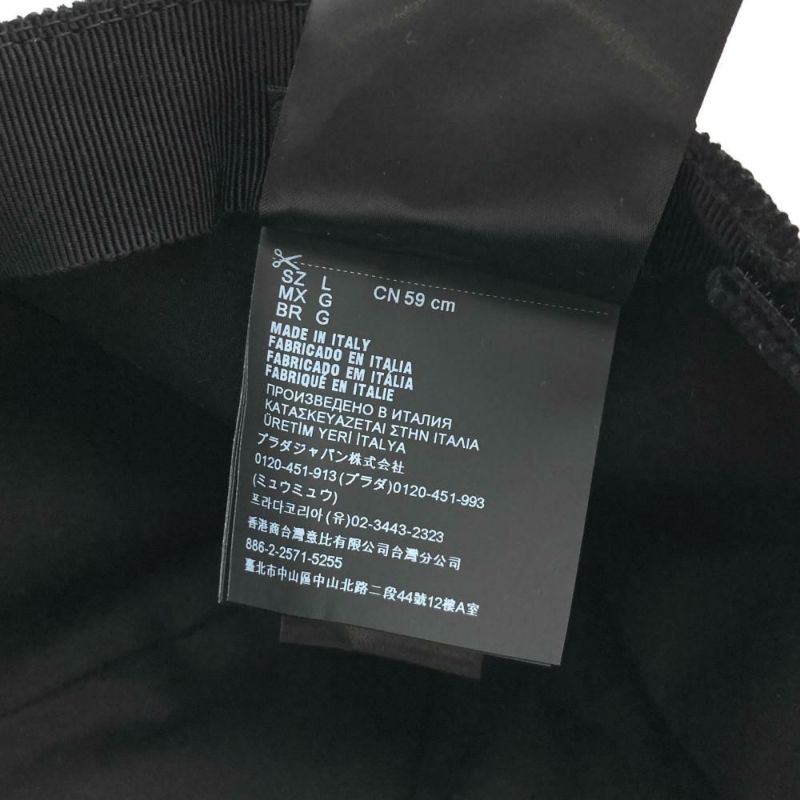 プラダ PRADA トライアングル ロゴ プレート キャップ コーデュロイ 2HC274 1JHC ブラック L【中古】