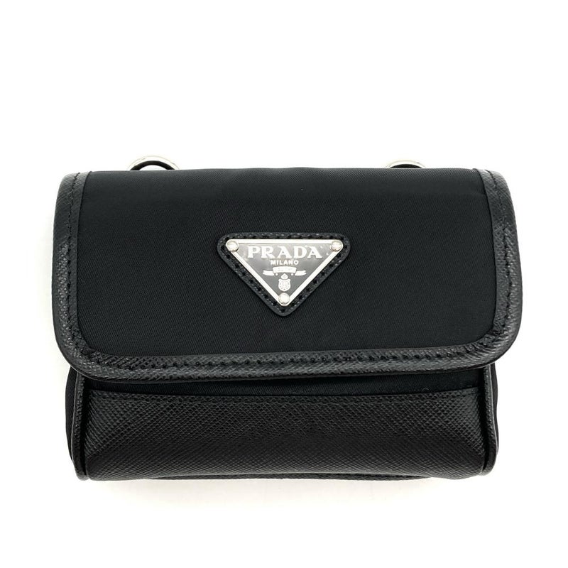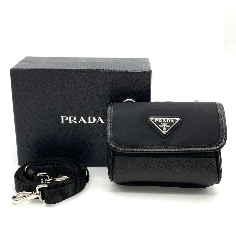 プラダ PRADA ミニ ポーチ ポシェット サフィアーノ ナイロン 2ZT022 ブラック RE-NYLON レディース【中古】