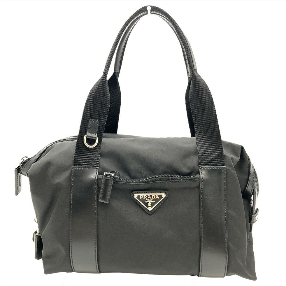 プラダ PRADA ミニボストン ハンドバッグ ナイロン レザー BR3697 ブラック シルバー×ブラック金具 レディース【中古】