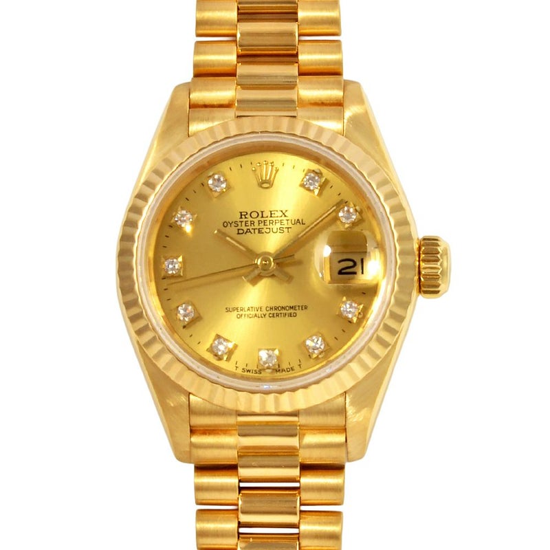 - ロレックス ROLEX 69178G デイトジャスト L番 腕時計 シャンパン文字盤 金無垢 K18YG 10Pダイヤ レディース【中古】
