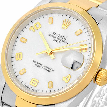 - ロレックス ROLEX オイスターパーペチュアル デイト 15203 SS×YG コンビ A番 メンズ 自動巻き 時計 飛びアラビアインデックス 白文字盤【中古】