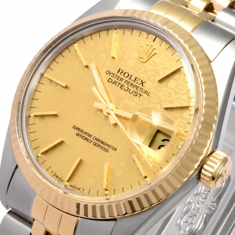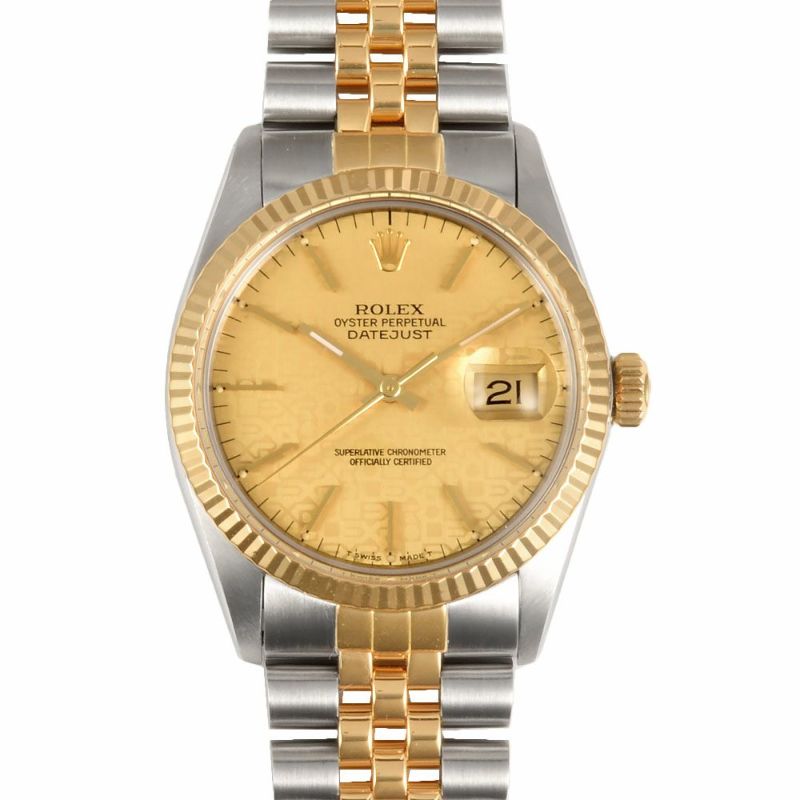 - ロレックス ROLEX 16013 デイトジャスト 91番台(1985年製造) 腕時計 シャンパン/プリントコンピューター文字盤 SS×YG メンズ【中古】