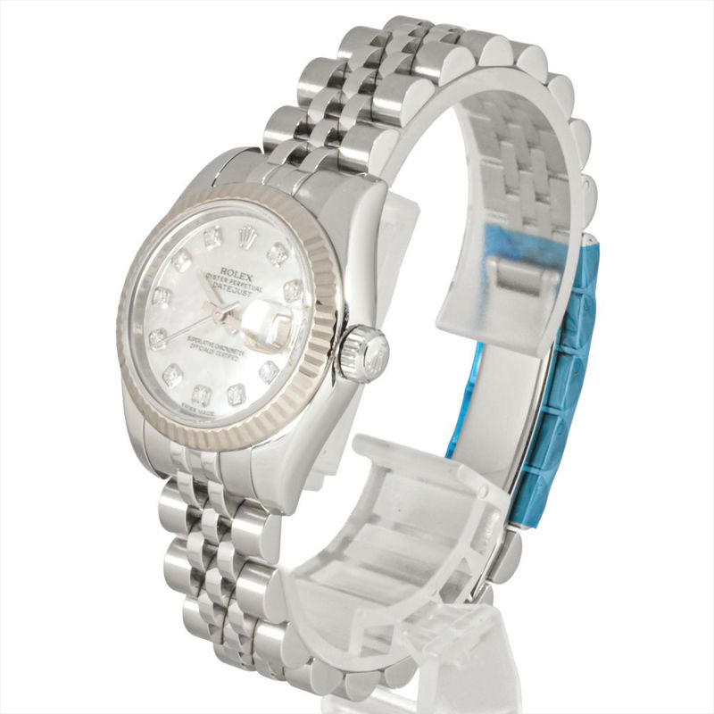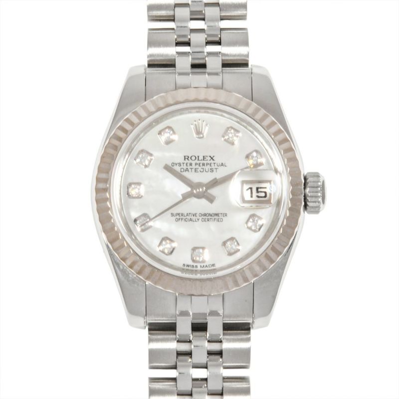 - ロレックス ROLEX 179174G デイトジャスト ランダムシリアル 腕時計 ホワイトシェル文字盤 新ダイヤ レディース【中古】