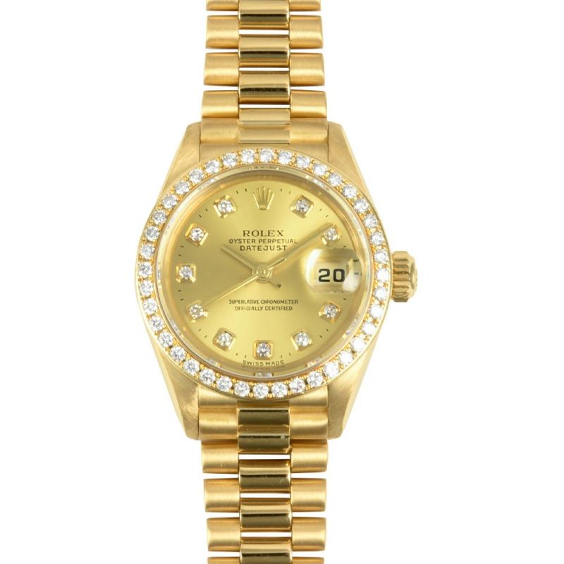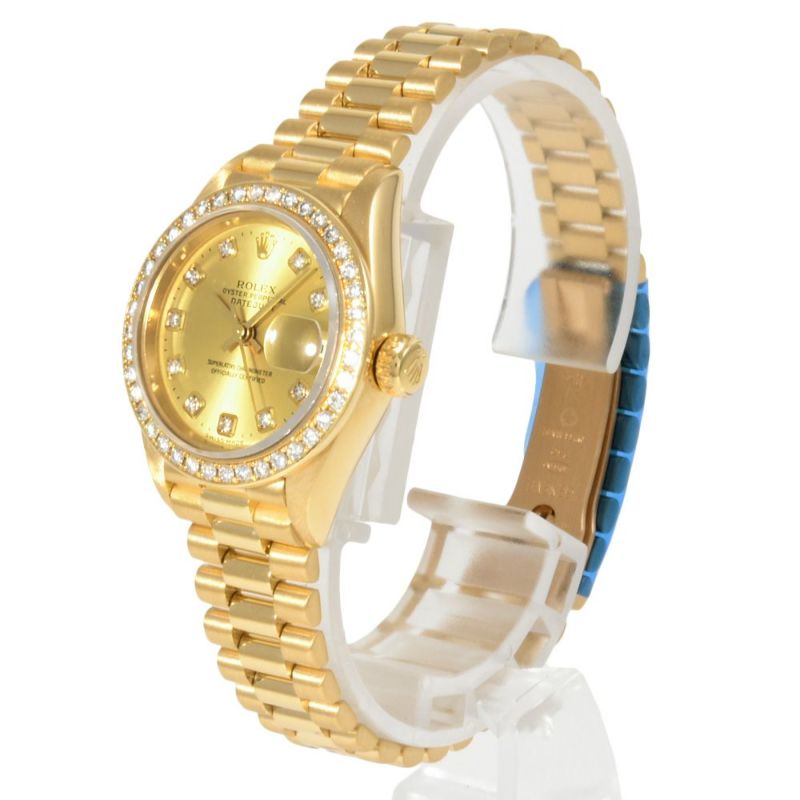 - ロレックス ROLEX 79138G デイトジャスト A番 腕時計 シャンパン文字盤 10Pダイヤ K18YG 金無垢 ダイヤベゼル レディース【中古】