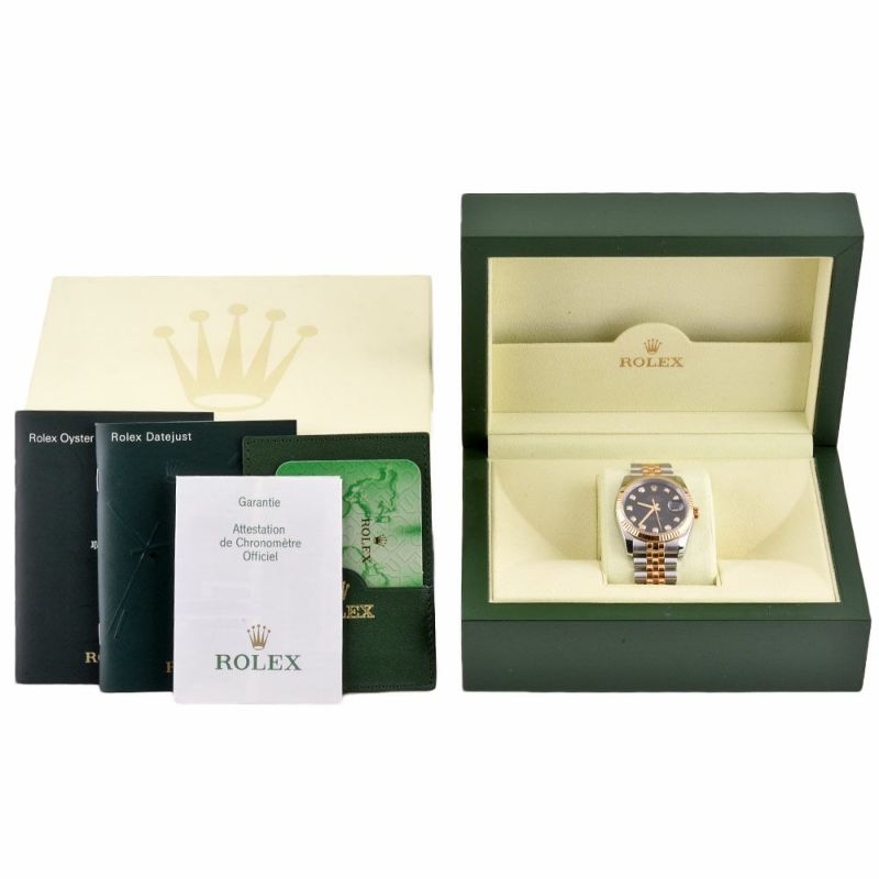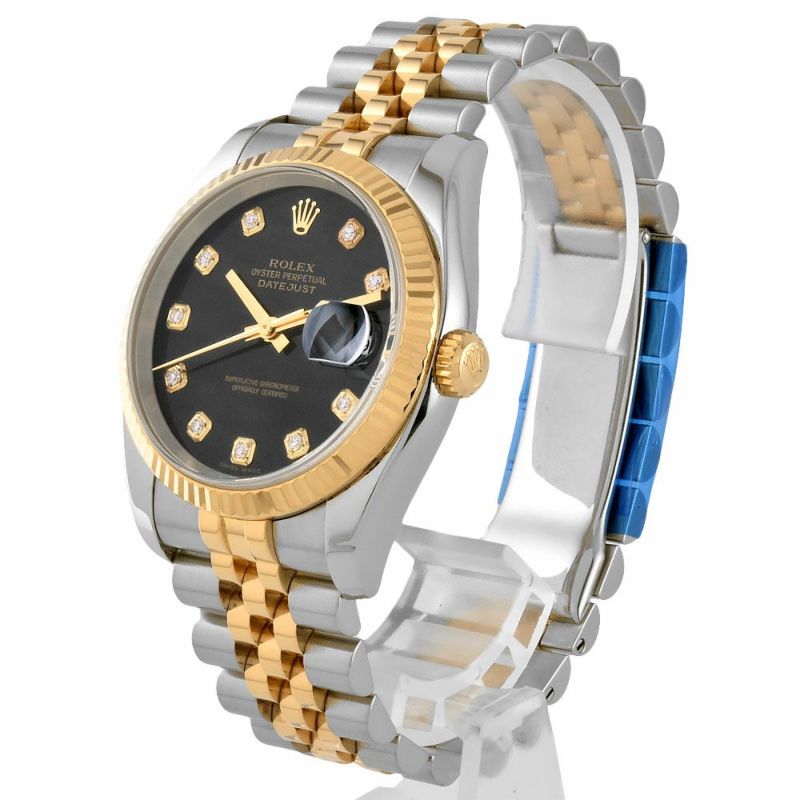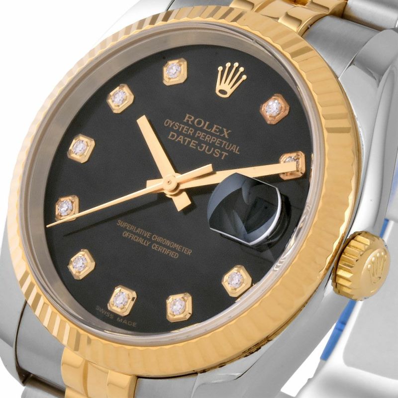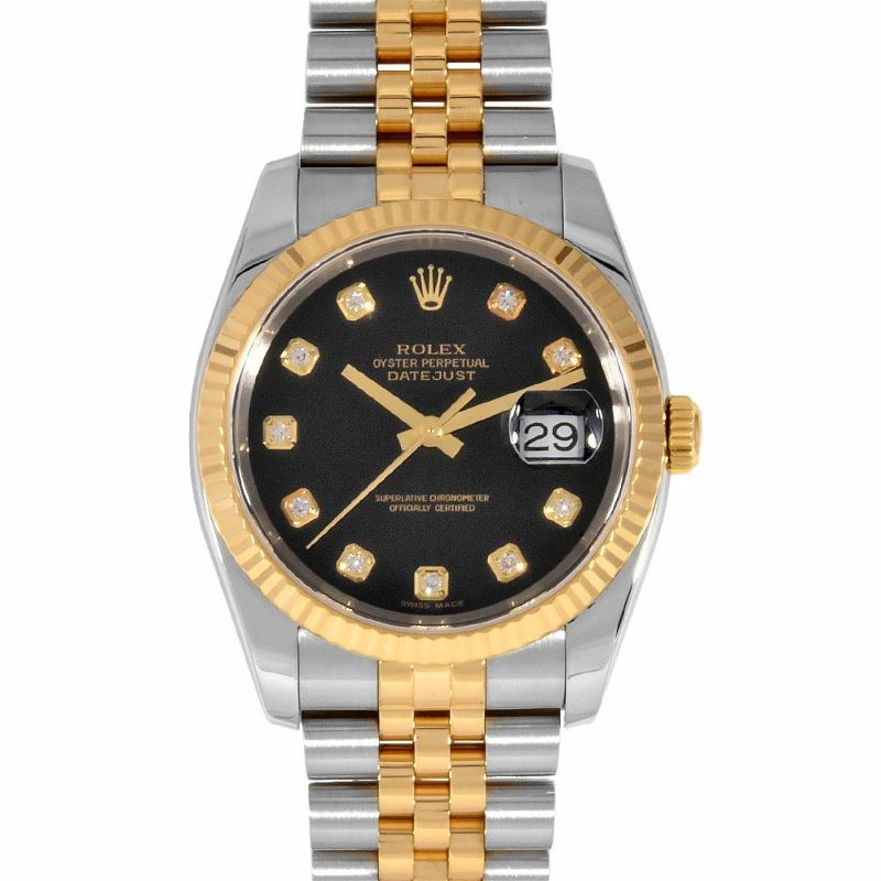- ロレックス ROLEX 116233G デイトジャスト D番 腕時計 ブラック文字盤 SS×YG 10P ダイヤ インデックス 2005年 メンズ【中古】