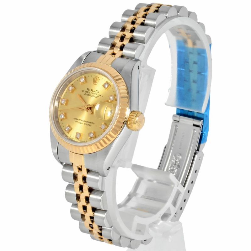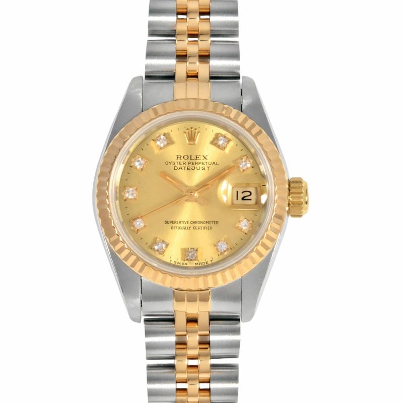 - ロレックス ROLEX 69173G デイトジャスト X番 腕時計 シャンパン文字盤 10P ダイヤインデックス コンビ YG×SS レディース【中古】