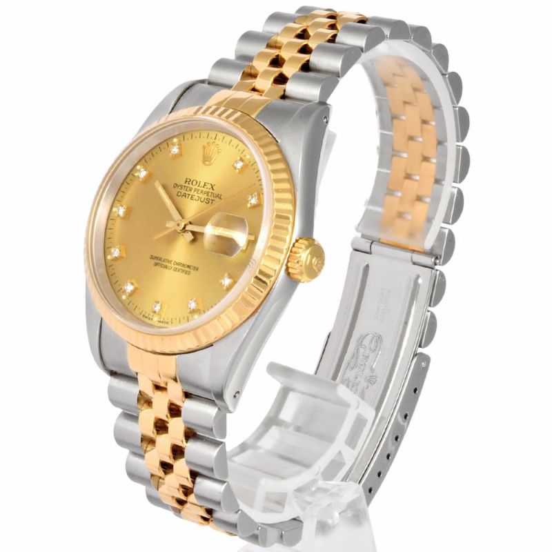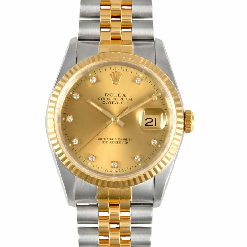 - ロレックス ROLEX 16233G デイトジャスト C番 腕時計 シャンパン文字盤 10P ダイヤインデックス SS×YG メンズ【中古】