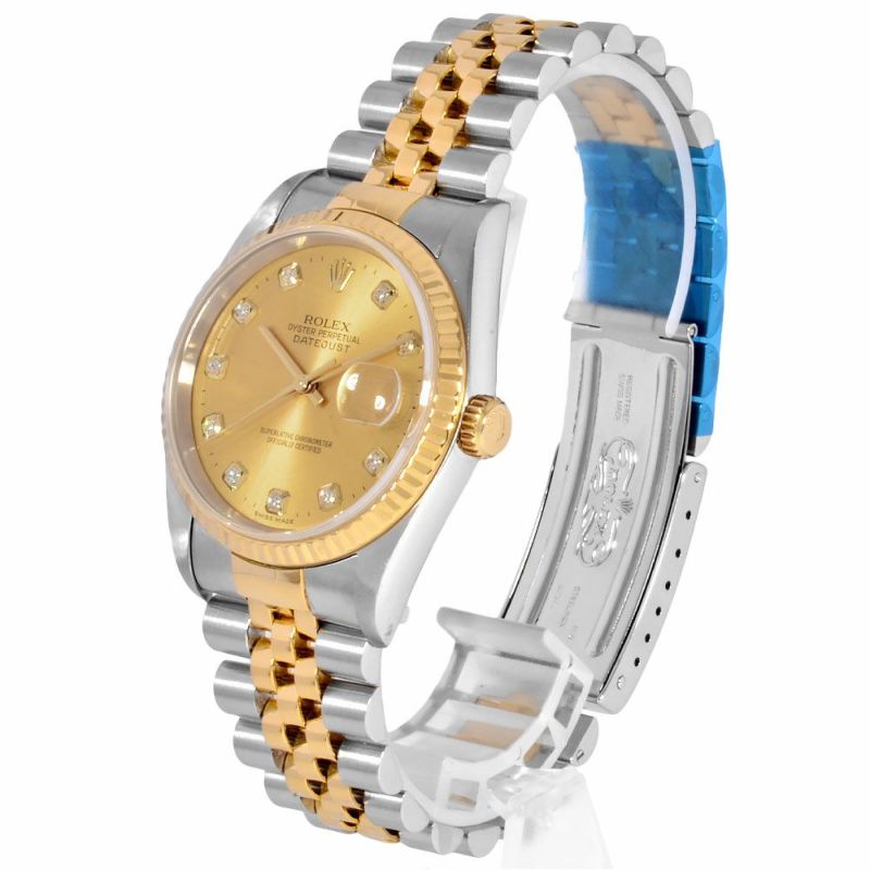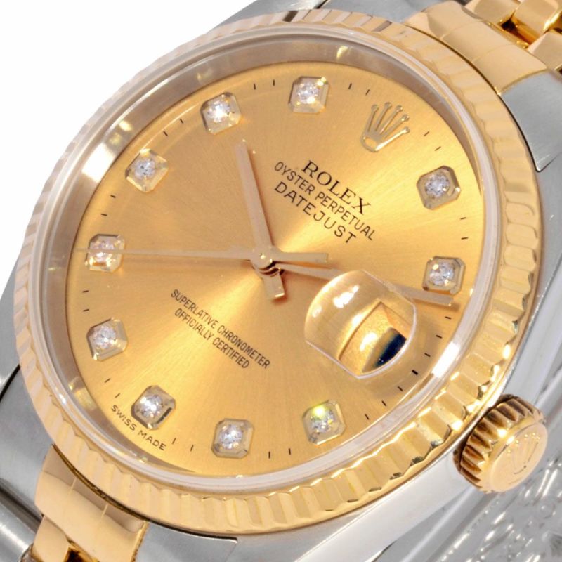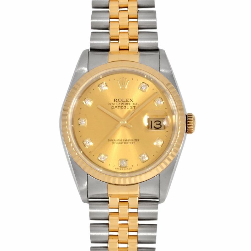 - ロレックス ROLEX 16233G デイトジャスト 腕時計 シャンパン文字盤 YG×SS コンビ 10P ダイヤインデックス メンズ【中古】