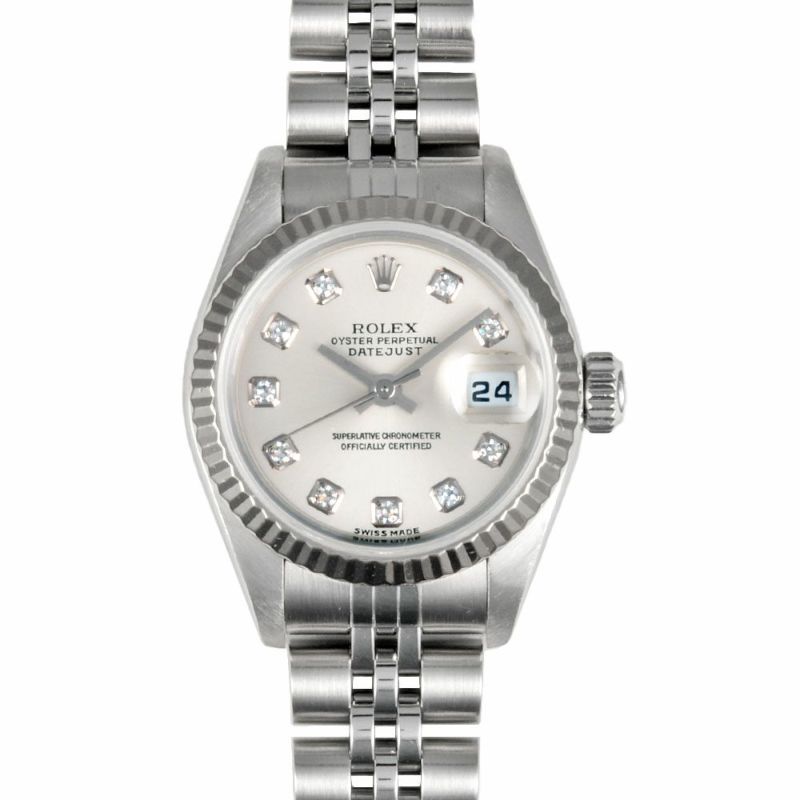 - ロレックス ROLEX 79174G デイトジャスト Y番(2002年製造) 腕時計 シルバー文字盤 10Pダイヤ WG×SS レディース【中古】