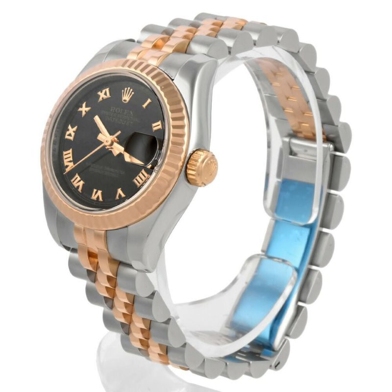 - ロレックス ROLEX デイトジャスト 179171 PG×SS D番 ローマンインデックス ブラック文字盤 レディース 自動巻き 時計【中古】