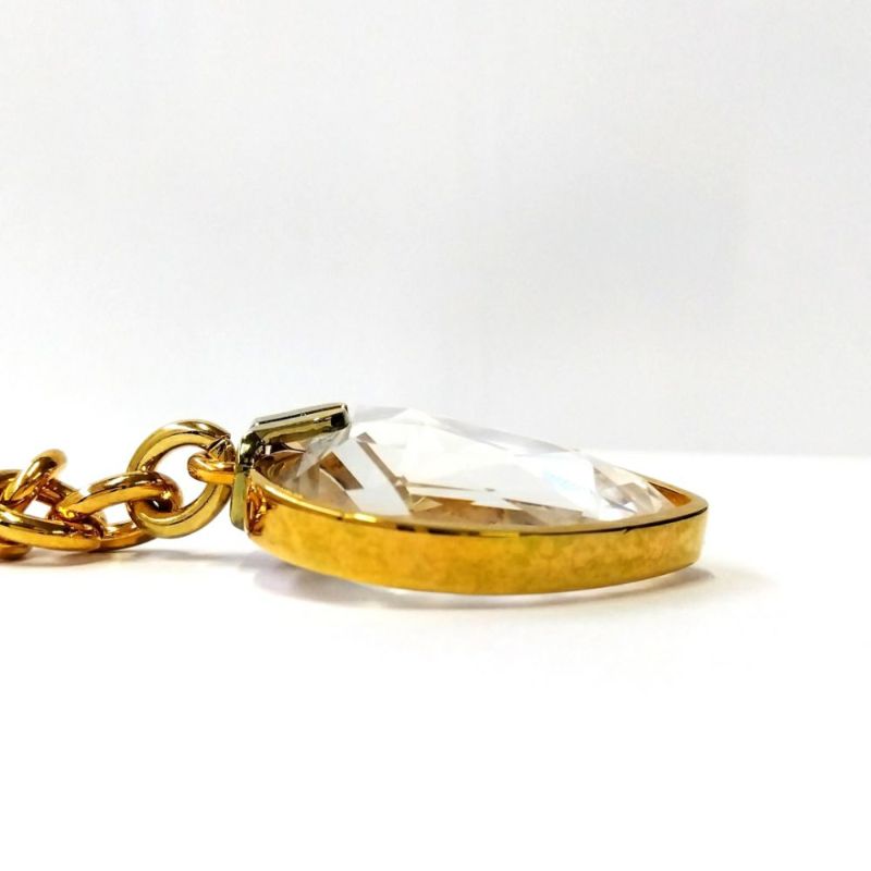 3. スワロフスキー SWAROVSKI ハート クリア クリスタル キーリング ゴールド【中古】