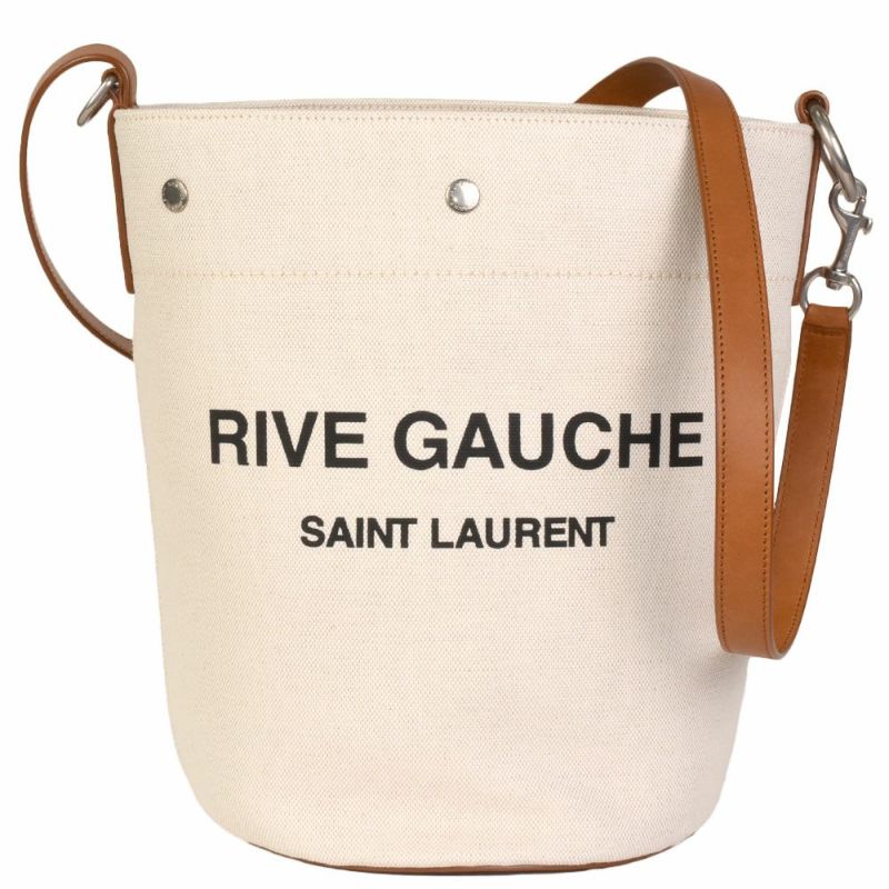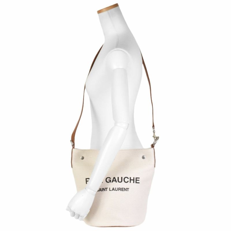 5. サンローラン SAINT LAURENT リヴゴーシュ ショルダーバッグ キャンバス レザー 669299 ブラウン/アイボリー レディース RIVE GAUCHE【中古】