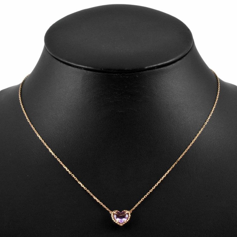 3. スタージュエリー STAR JEWELRY ハートモチーフ ネックレス アメジスト K10YG 2.2g レディース【中古】