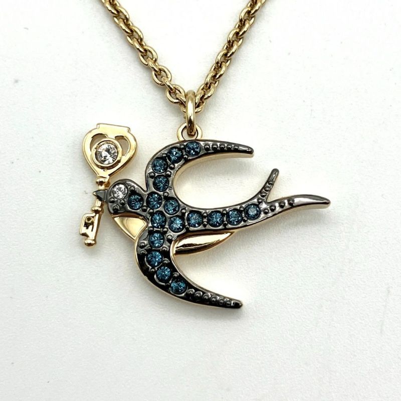 商品内容 Tarot Magic ネックレスです。タロットのシンボルが見せる神秘的な世界にインスパイアされたTarot Magic シリーズ。積極性や再生を意味するツバメのモチーフに繊細なクリスタルのパヴェをあしらい、幸運のシンボルである鍵と組み合わせたゴールドカラーのネックレスです。ブルーカラーのクリスタルがエレガントにきらめき、どんなスタイルに合わせても会話のきっかけを生み出すデザインに仕上げています。お手持ちのアイテムと重ねづければトレンドのルックを楽しめます。