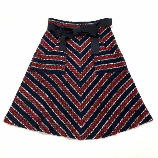 5. サカイ Sacai luck ボーダー ラップ 巻き スカート 11SSLU221 レッド 2 レディース【中古】