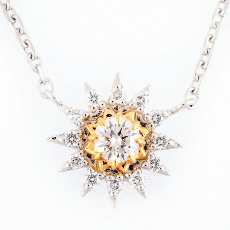 3. スタージュエリー STAR JEWELRY サンバースト ネックレス Pt950 K18 ダイヤモンド 0.08ct【中古】
