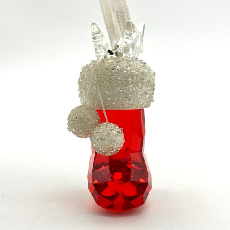 商品内容 2012年に廃盤となったサンタさんの靴下です。Siamクリスタルでできたサンタさんの靴下はクリスマスシーズンの楽しいシンボル。はき口の部分と吊り下げられたポンポン2個はクリスタル・ファブリック製。ホワイトのサテンリボンつき。Moonlightクリスタルでできた一対の星が上部にあしらわれています。コレクション、お友達、大切な方への贈り物としておすすめです。