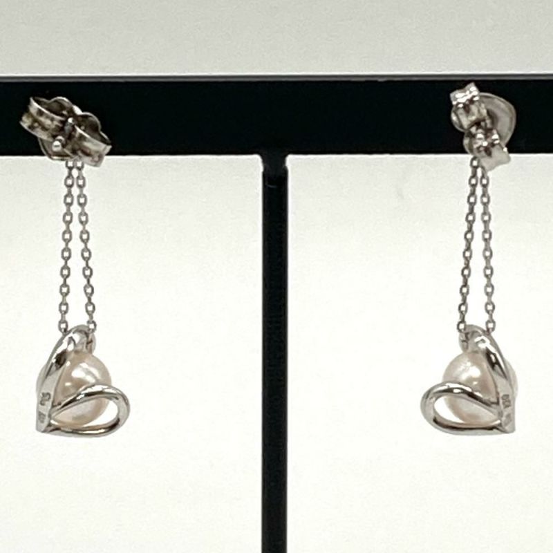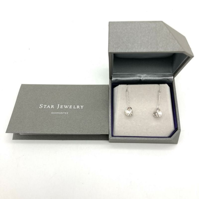 3. スタージュエリー STAR JEWELRY PEARL IN THE HEART チェーンドロップ ピアス パール 2JP0605 K10WG 2.0g ハートモチーフ【中古】