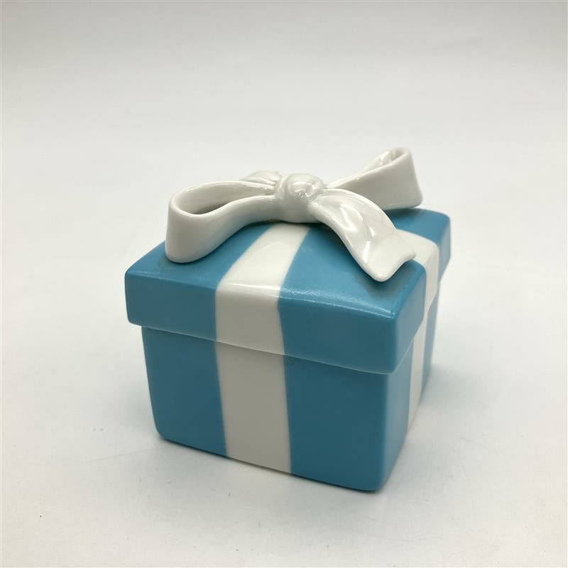 4. ティファニー Tiffany&Co. ミニブルーボウボックス ジュエリーケース 磁器【中古】