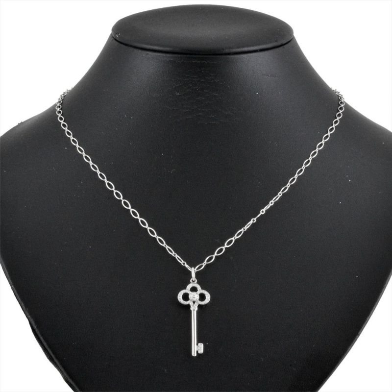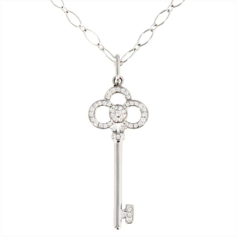 5. ティファニー Tiffany&Co. クラウンキー ネックレス ダイヤモンド K18WG 6.4g ホワイトゴールド レディース【中古】