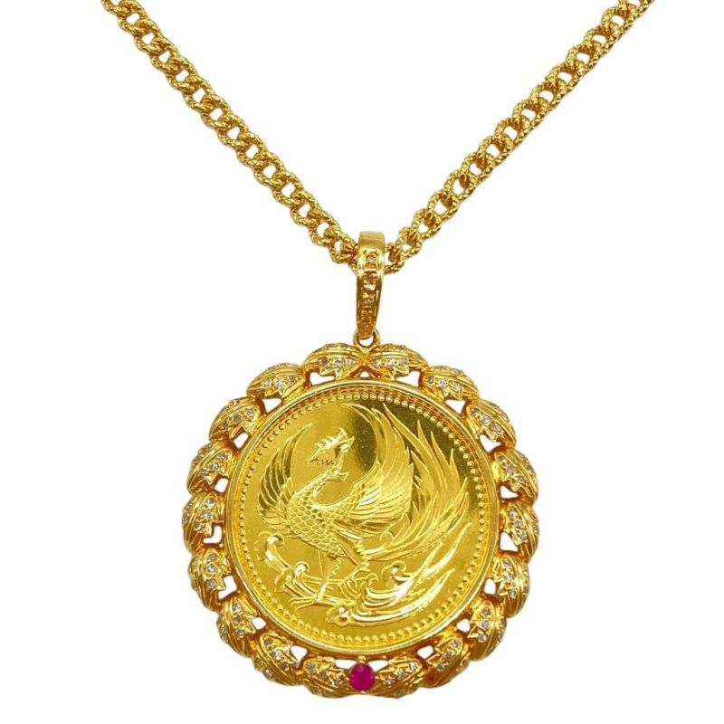 5. 天皇陛下御即位記念 10万円金貨 コイントップ ペンダント ネックレス K18YG 純金 30g ダイヤモンド 0.59ct ウノアエレ UNOAERRE【中古】