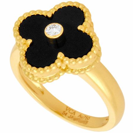 送料無料 新品仕上げ済 ヴァンクリーフ&アーペル Van Cleef&Arpels ヴィンテージ アルハンブラ リング ダイヤモンド オニキス K18YG #54【中古】