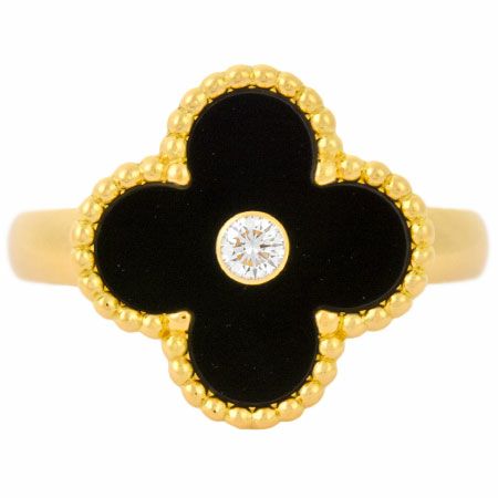 送料無料 新品仕上げ済 ヴァンクリーフ&アーペル Van Cleef&Arpels ヴィンテージ アルハンブラ リング ダイヤモンド オニキス K18YG #54【中古】