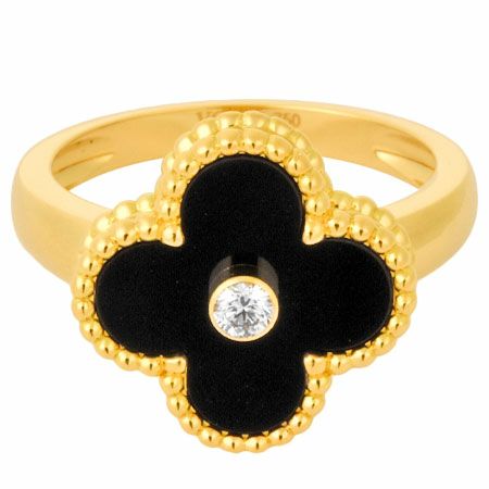 3. ヴァンクリーフ&アーペル Van Cleef&Arpels ヴィンテージ アルハンブラ リング ダイヤモンド オニキス K18YG #54【中古】