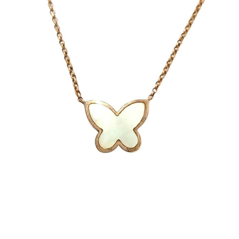 5. ヴァンドーム青山 Vandome Aoyama バタフライ パピヨン ネックレス マザーオブパール K10PG 2.3g【中古】