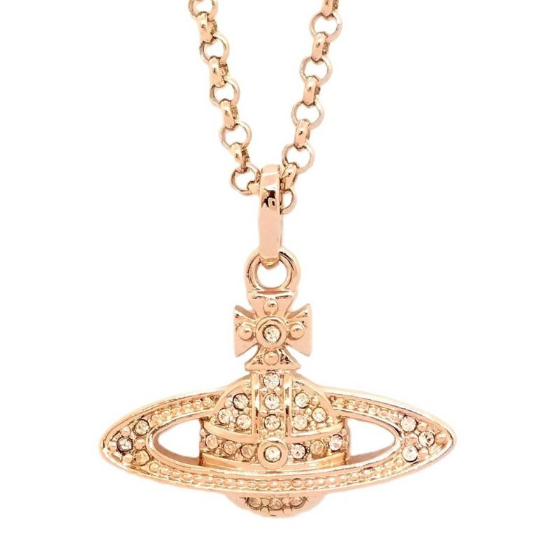 3. ヴィヴィアンウエストウッド Vivienne Westwood ミニバスレリーフ ネックレス 63020086 ピンクゴールド ラインストーン【中古】
