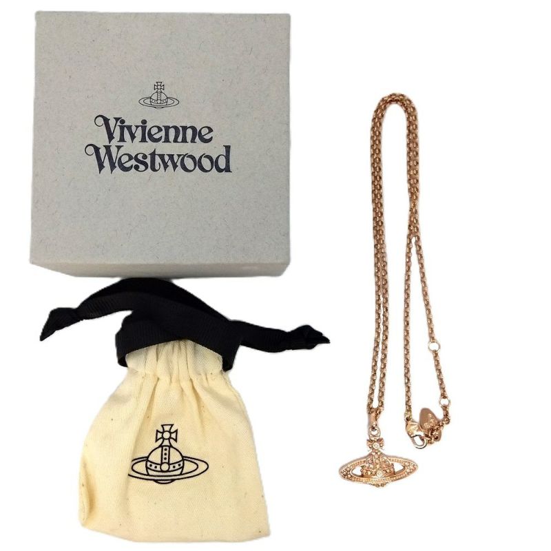 ヴィヴィアンウエストウッド Vivienne Westwood ミニバスレリーフ ネックレス 63020086 ピンクゴールド ラインストーン【中古】