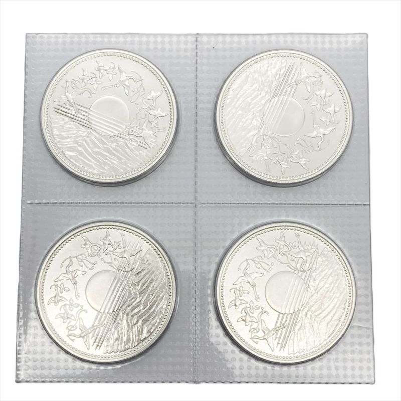 4. 天皇陛下御在位六十年記念 壱万円銀貨 昭和六十一年 連結4枚セット 純銀 20g 貨幣【中古】