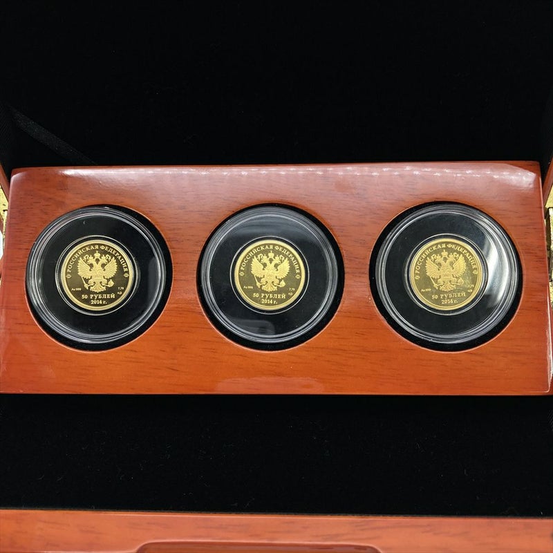 4. ソチ オリンピック 記念 五輪 50ルーブル コイン 3枚セット 金貨 レディース【中古】